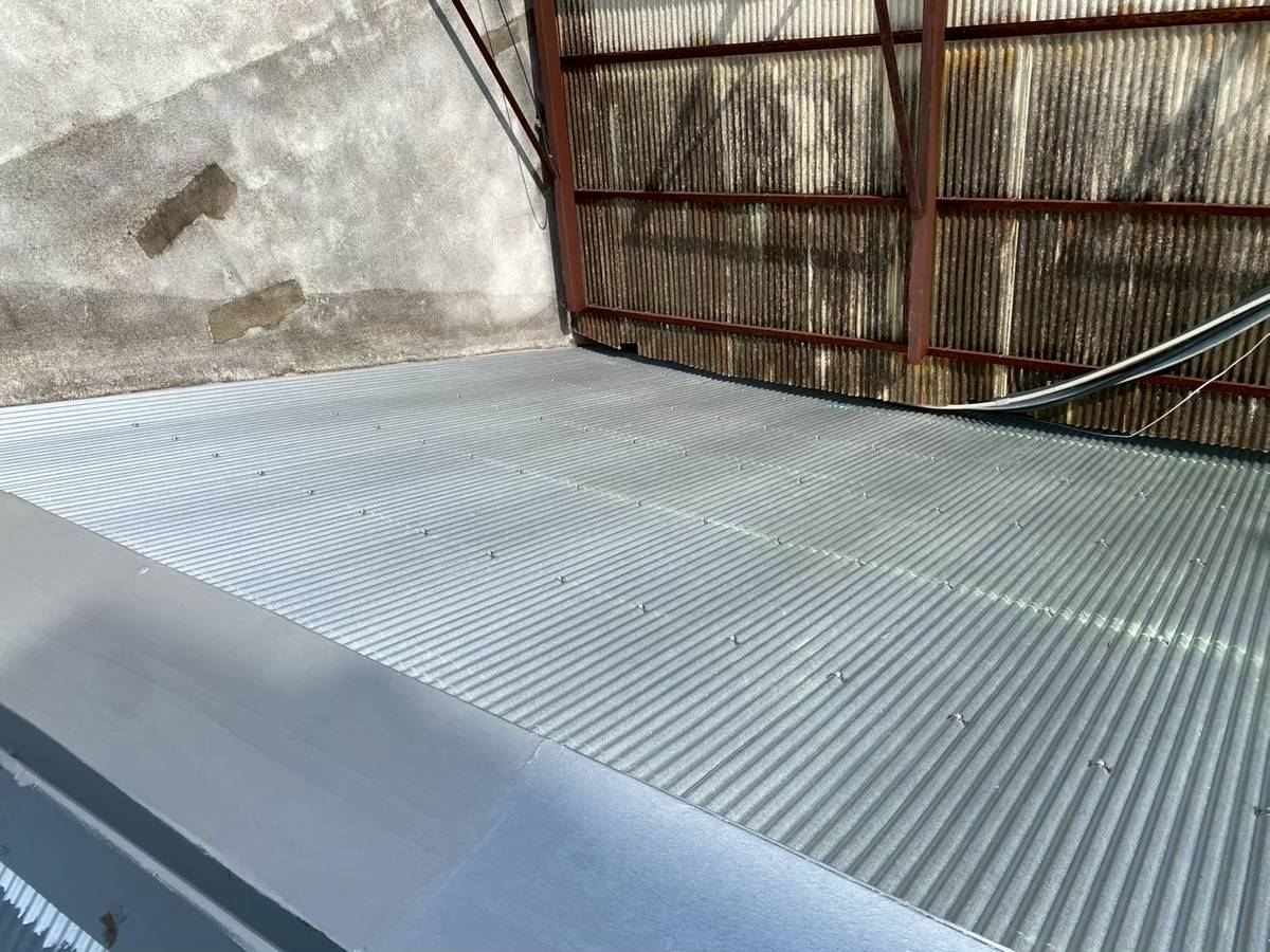 屋根の腐食、屋根の勾配もあり、足元がかなり不安定の中、何事もなく綺麗な屋根に仕上げる事ができ、お客様も大変喜んでおられました。